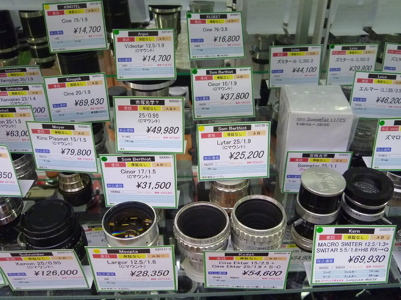 当店のCマウントレンズの棚です。業界屈指の在庫量です。