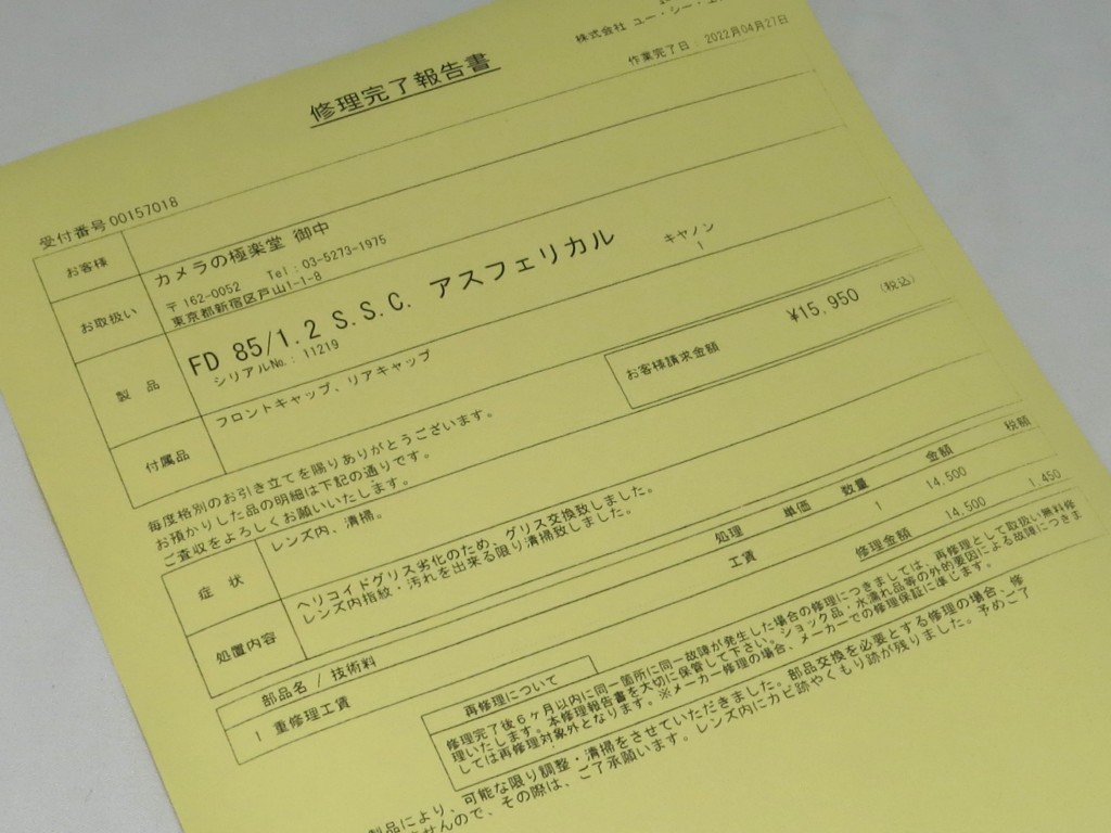 モデル名:FD 85mm F1.2 S.S.C. ASPHERICAL